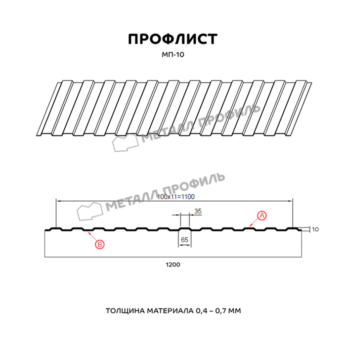 Профлист Металл-Профиль МП-35 Полиэстер 0.7 мм RAL 5015 Синее небо
