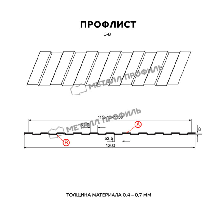 Профлист Металл Профиль С-8 0,7 Полиэстер RAL 5015 Синее небо | B