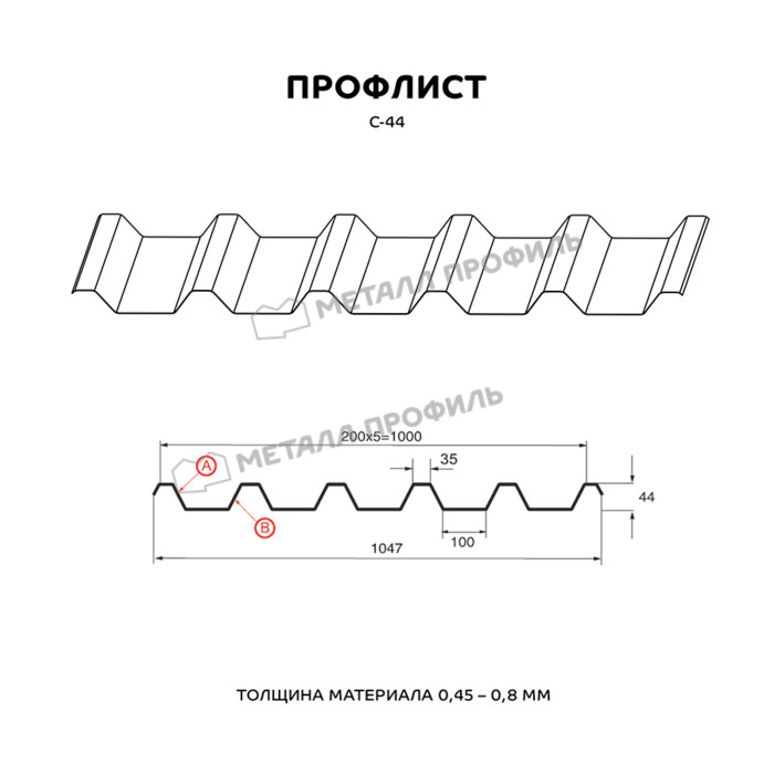 Профлист Металл-Профиль С-44 Полиэстер 0.7 мм RAL 5015 Синее небо