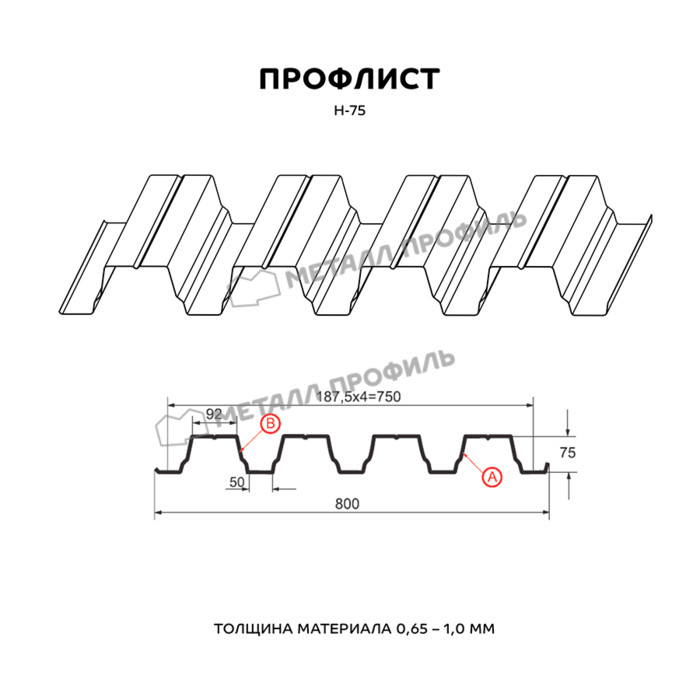 Профлист Металл Профиль Н-75 0,7 Полиэстер RAL 5015 Синее небо